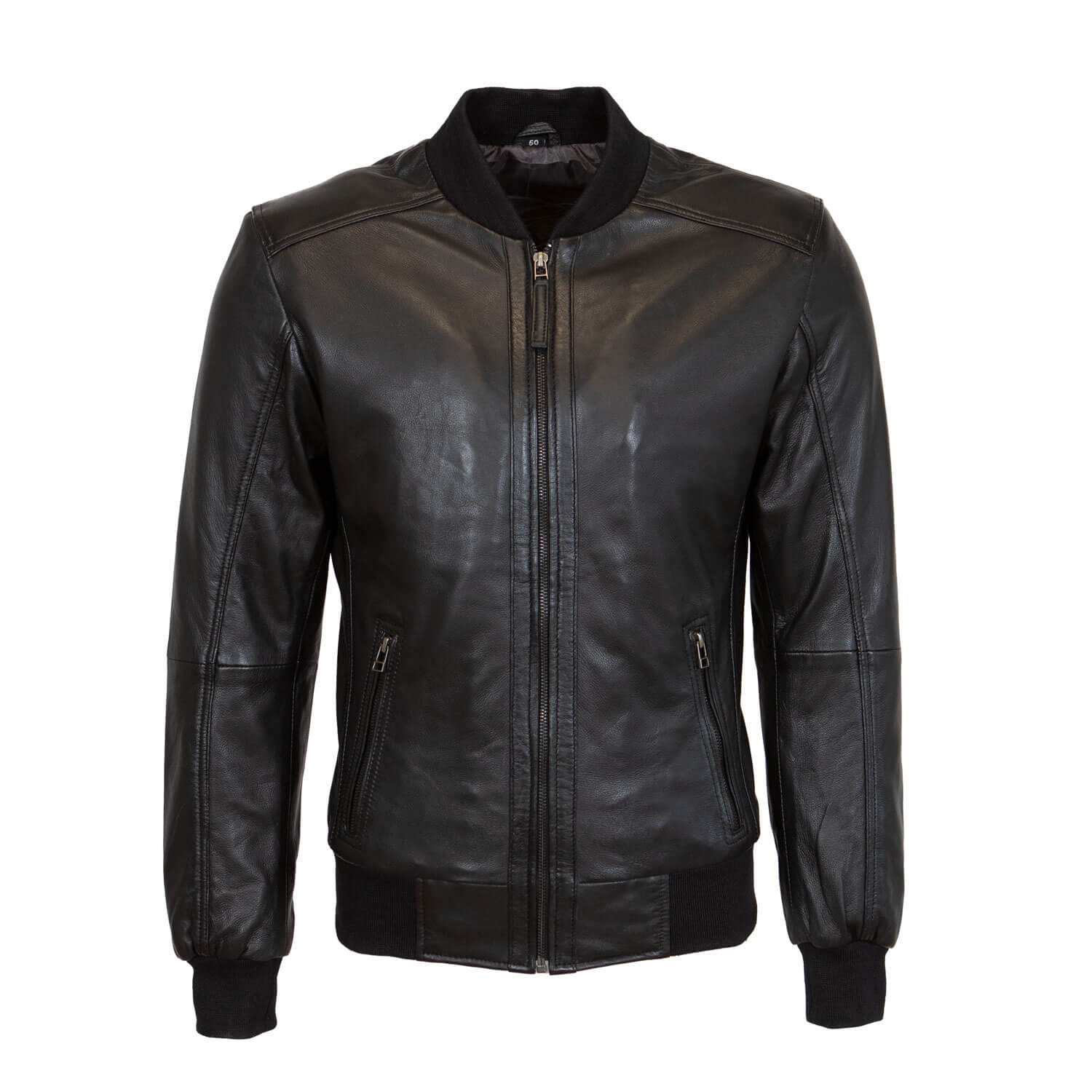 Experience timeless style and modern comfort with our MEN’S LEATHER BOMBER JACKET BLACK. This classic piece features ribbed collar, cuffs, and waist for a sophisticated touch and a snug fit. Stay organized with two zipped front pockets and keep your valuables secure in two inside pockets, all while enjoying exceptional comfort with the soft cotton lining inside. Whether you’re headed for a casual outing or need warmth on chilly days, this jacket effortlessly combines fashion and practicality. Elevate your style with this unique piece and make a statement with its timeless charm and modern comfort. Redefine your fashion statement today!