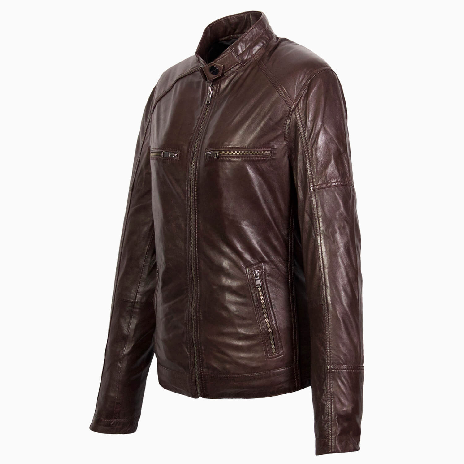 Introducing the MEN’S N082 VEG WOOD Leather Jacket—classic elegance meets functionality. With buttoned buckle collar, elegant zipper closure, strategic pockets, slim fit, and adjustable buckle, it’s personalized for exceptional comfort and style. Crafted from premium sheep leather with cotton lining, it’s a perfect blend of fashion and function. Discover it today!