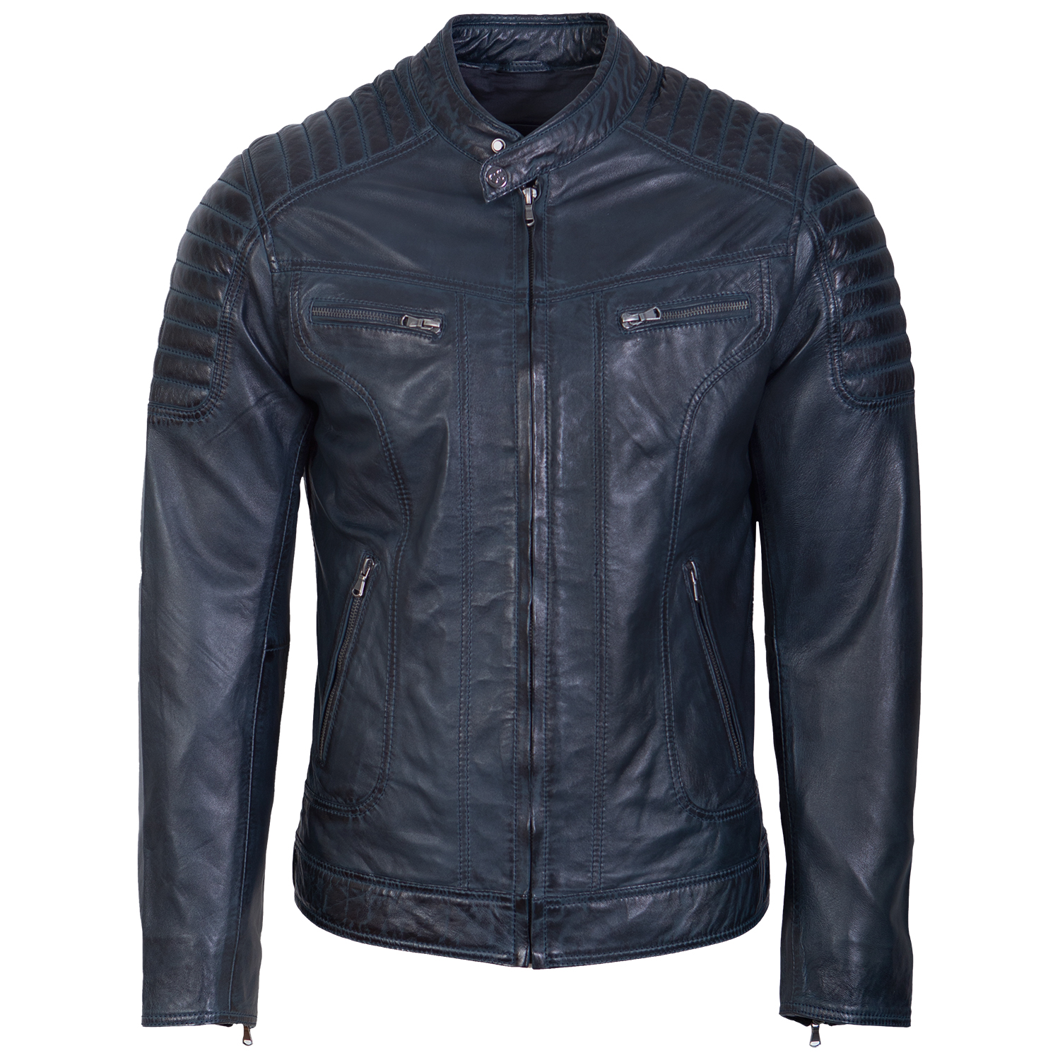 Discover the epitome of style and practicality with our Men’s Leather Jacket Ryan Blue, a top-selling masterpiece. Meticulously crafted, it features sleek zipper details, ribble shoulders, and a comfortable cotton lining. With different size ranges, we guarantee the perfect fit for every body type. Elevate your fashion game with this timeless classic that effortlessly marries form and function, making it a must-have addition to your wardrobe.