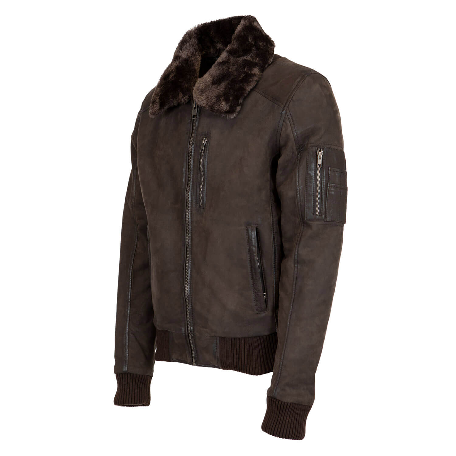 Elevate Your Style with our Men’s Leather Lamb Stonewash Bomber in Dark Brown! Unleash a fusion of rugged allure and urban sophistication with leather bee-adorned pockets, a detachable fur collar, and cozy insulation. In a rich, dark brown hue, this jacket defines modern comfort and timeless style.