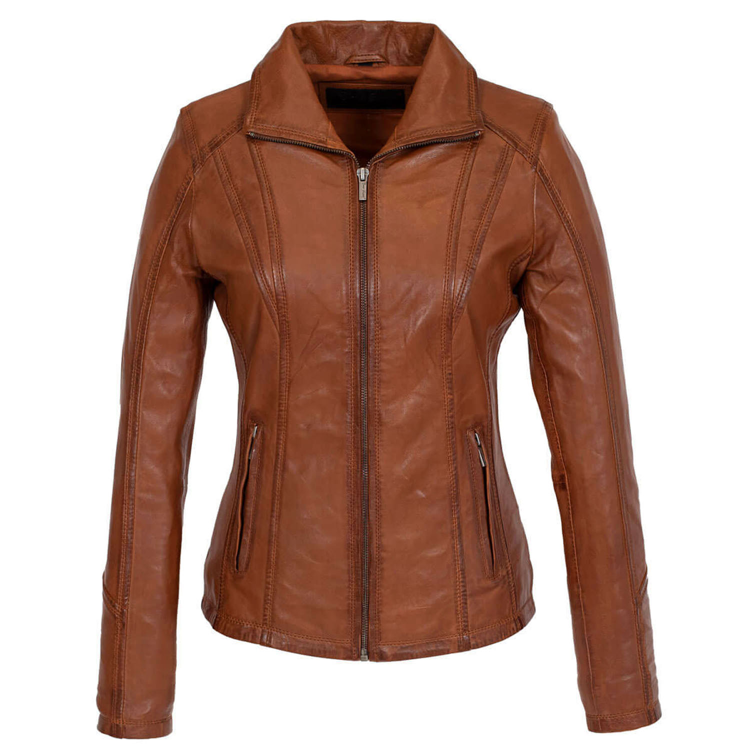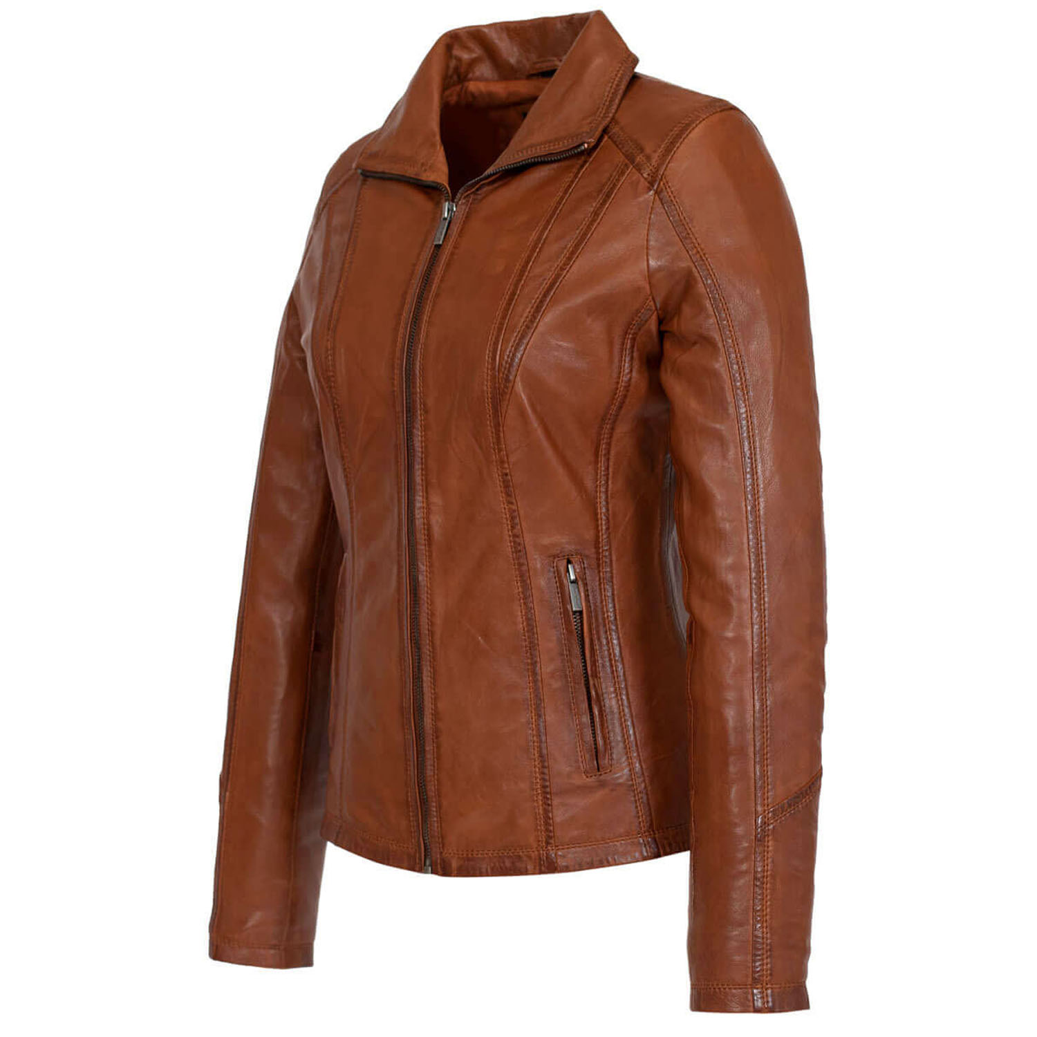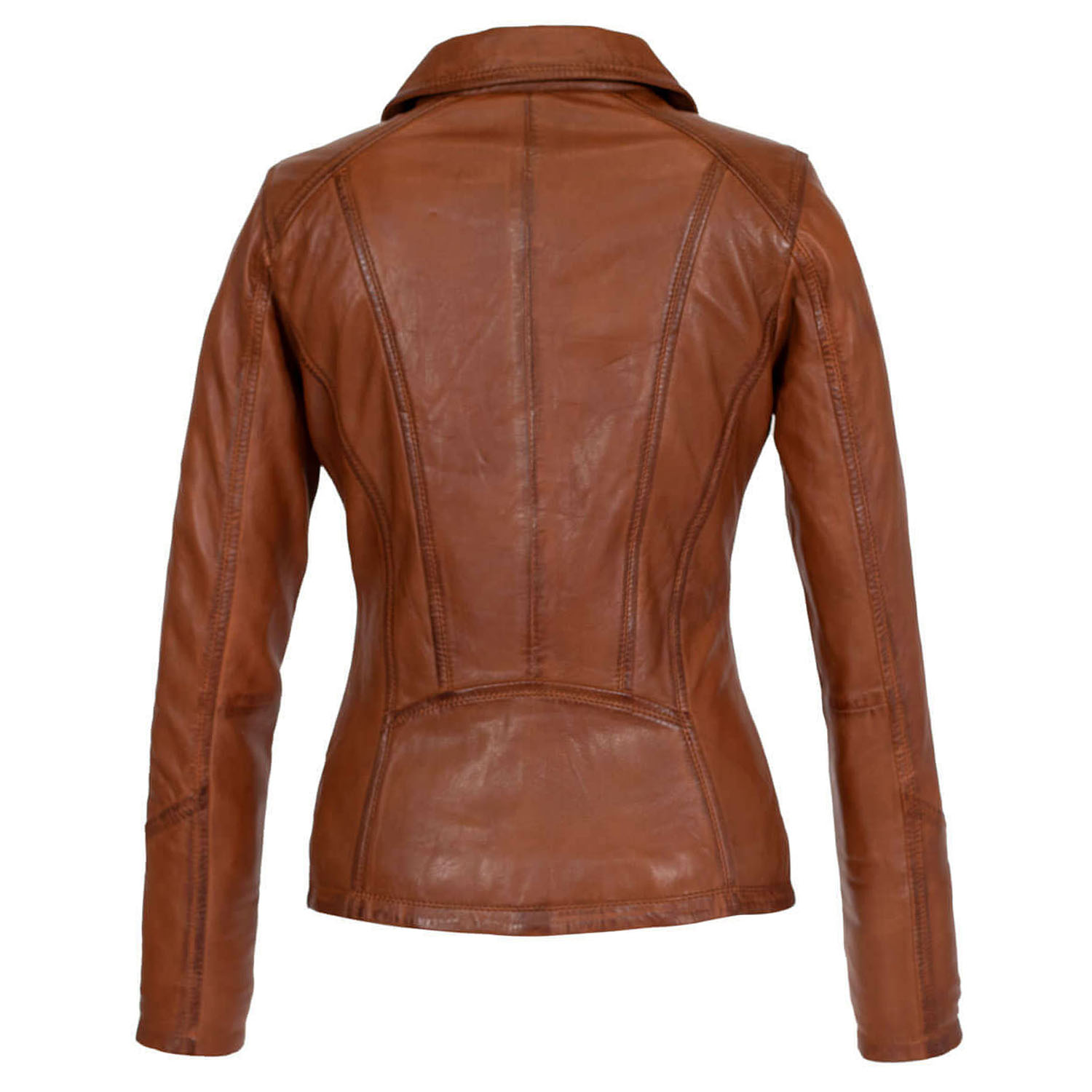 Elevate your style with our Women’s Classic Leather Jacket (9938-A Brandy), meticulously designed to combine rugged sophistication with effortless elegance. Crafted from premium sheep vegetal leather, it offers exceptional quality, sustainability, and durability. Its timeless design transcends trends, making it a versatile addition to your wardrobe for years to come. Crafted from premium genuine leather, this jacket not only exudes enduring quality but also boasts thoughtful design features. Tailored to perfection, it beautifully accentuates your silhouette. The stylish zipper details add a touch of edgy sophistication, and the functional pockets provide convenient storage space while enhancing the jacket’s design.