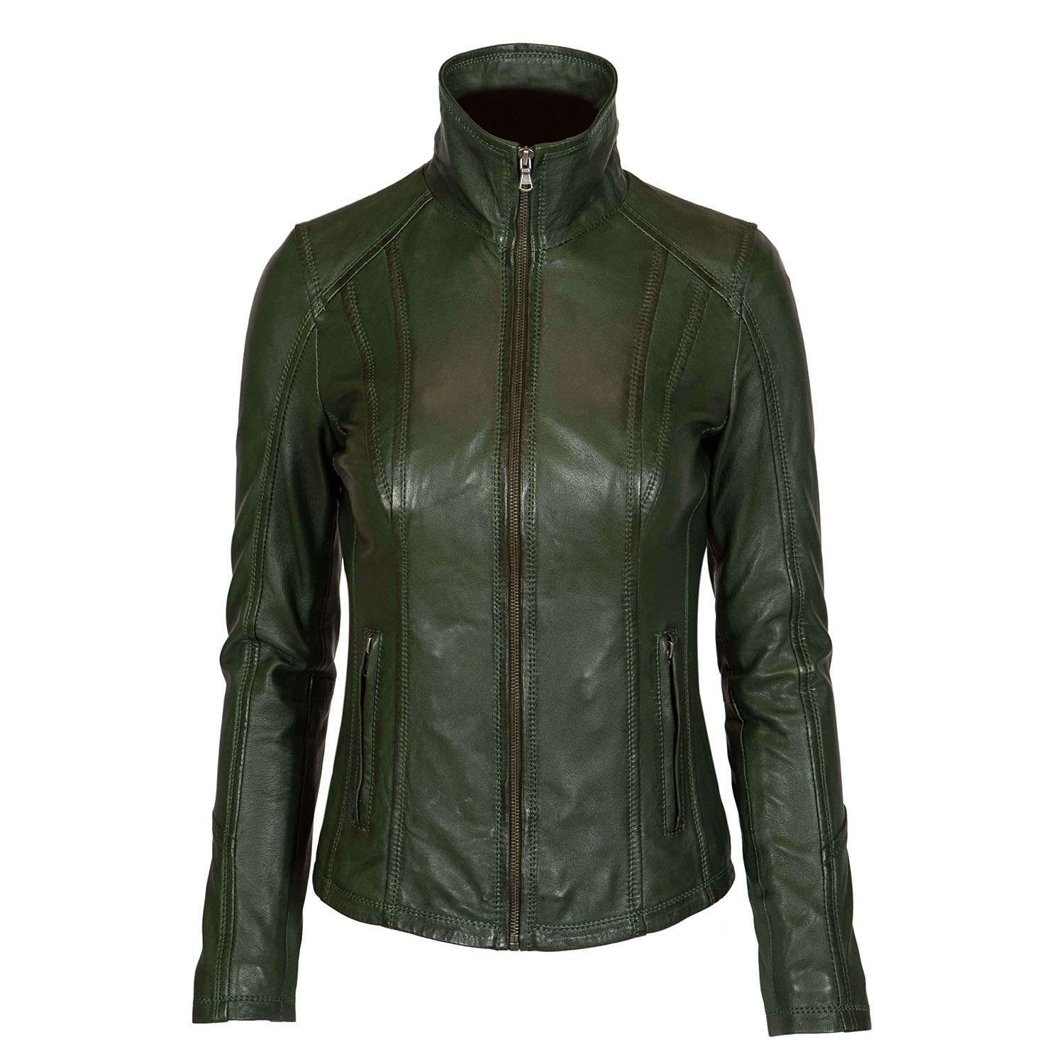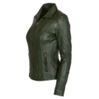 Elevate your style with our Women’s Classic Leather Jacket (9938-A Green), meticulously designed to combine rugged sophistication with effortless elegance. Crafted from premium sheep vegetal leather, it offers exceptional quality, sustainability, and durability. Its timeless design transcends trends, making it a versatile addition to your wardrobe for years to come. Crafted from premium genuine leather, this jacket not only exudes enduring quality but also boasts thoughtful design features. Tailored to perfection, it beautifully accentuates your silhouette. The stylish zipper details add a touch of edgy sophistication, and the functional pockets provide convenient storage space while enhancing the jacket’s design.